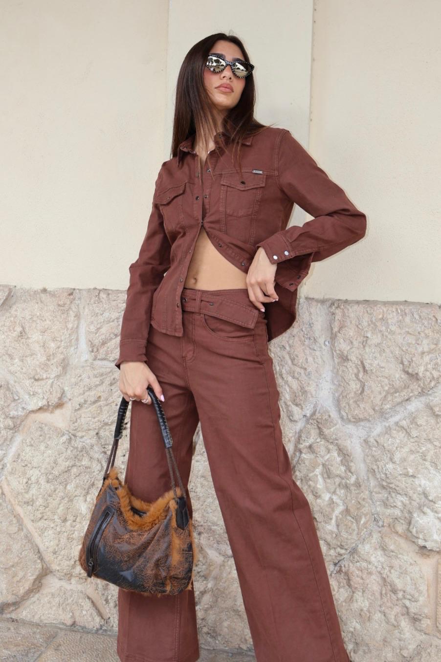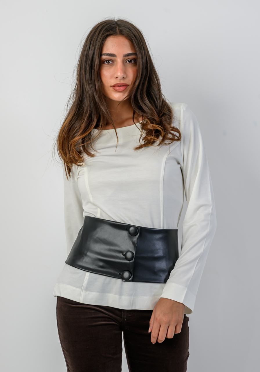 חולצה עם חגורת דמוי – עור