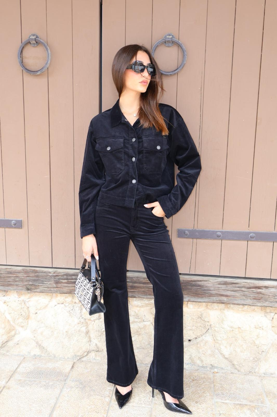 חולצת קורדרוי שחורה בעלת מראה נקי ואלגנטי. עשויה בד קורדרוי רך ונעים, עם גזרה מחמיאה וקו כתפיים מובנה. סגירה קדמית עם כפתורים ומעליה שני כיסי חזה מעוצבים שמוסיפים טאץ’ יוקרתי. פריט מושלם ליום-יום ולערב, שמשדר סטייל effortless ומדויק.