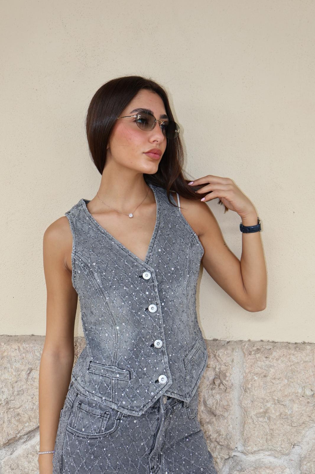 הסריג כולל כפתורים דקורטיביים מלפנים ושני כיסים קטנים להשלמת הלוק. עשוי בד נעים למגע המתאים למראה יום-יום אלגנטי או לקז’ואל מתוחכם.