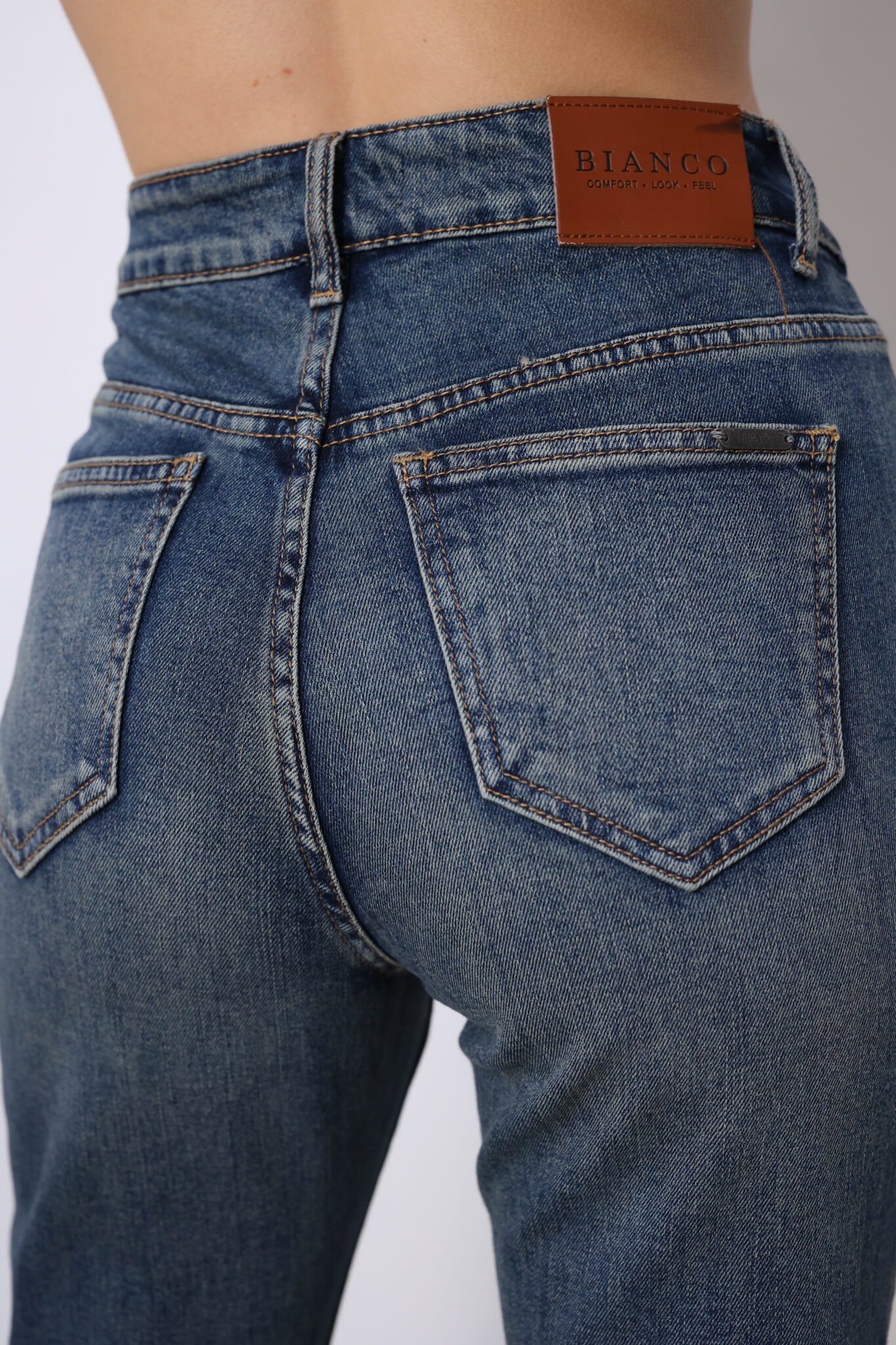 ג’ינס מאמס בגזרה ישרה מחמיאה ובבד סטרצ’י נוח ואוסף.