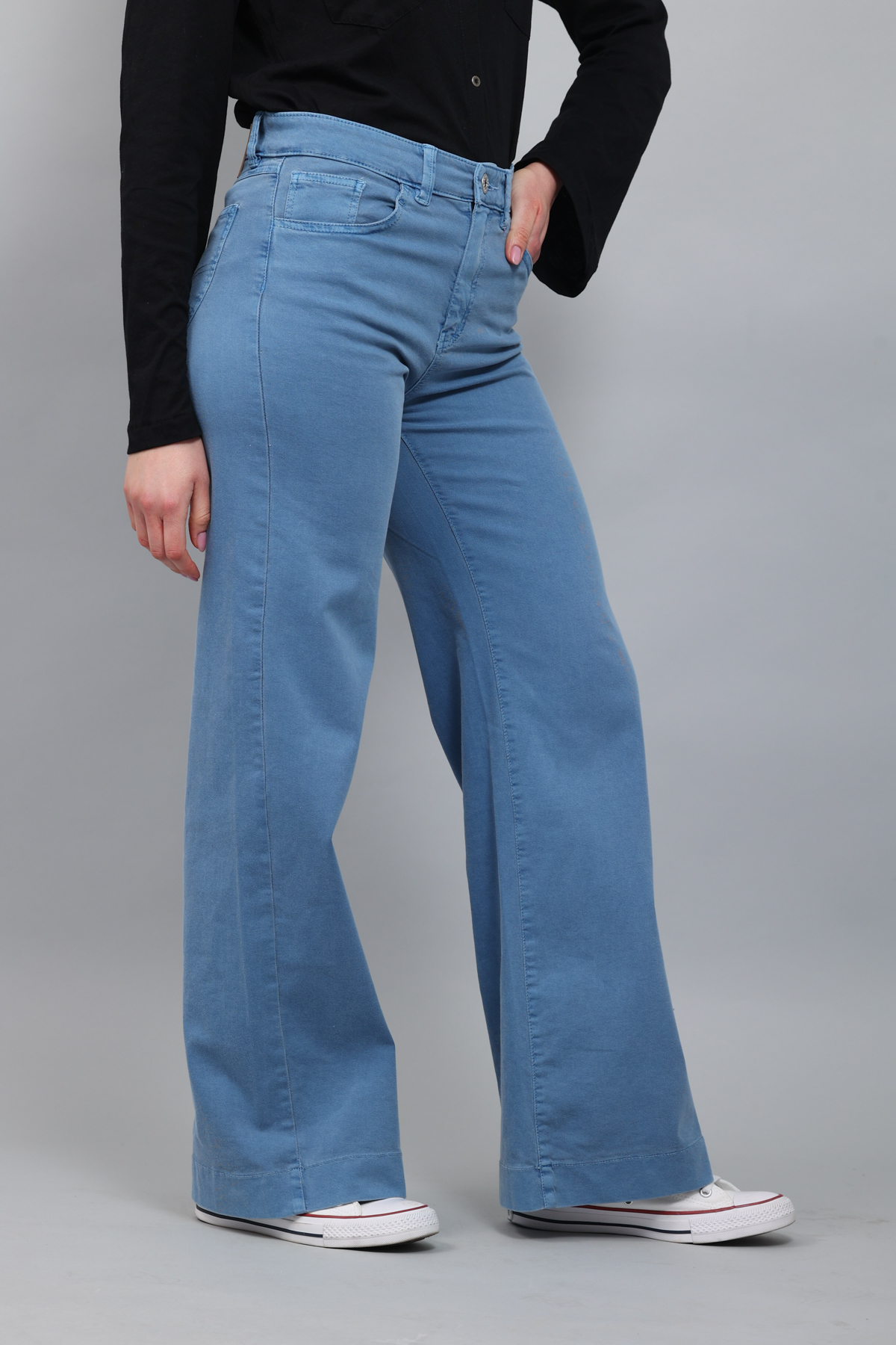 ג’ינס פלייר באורך ארוך ובגזרה סופר מחמיאה בבד סטרצ’י נוח ואוסף.