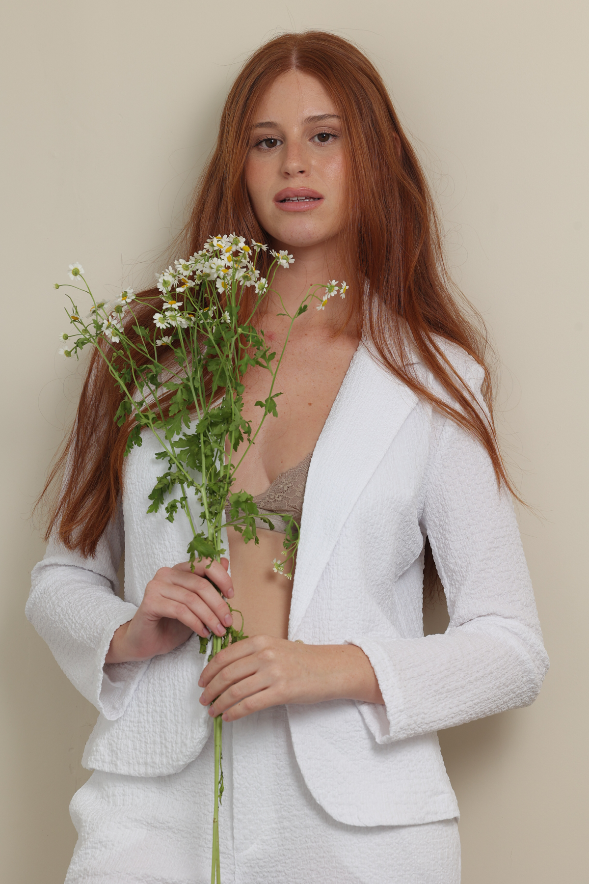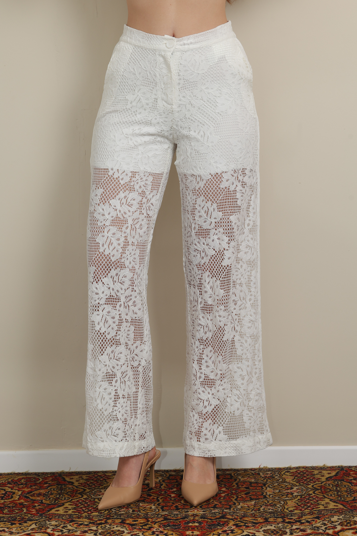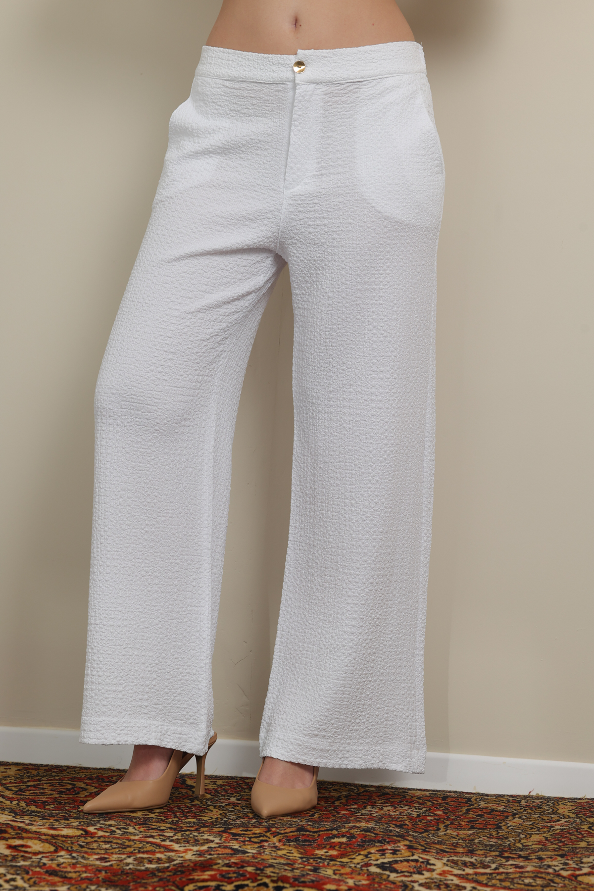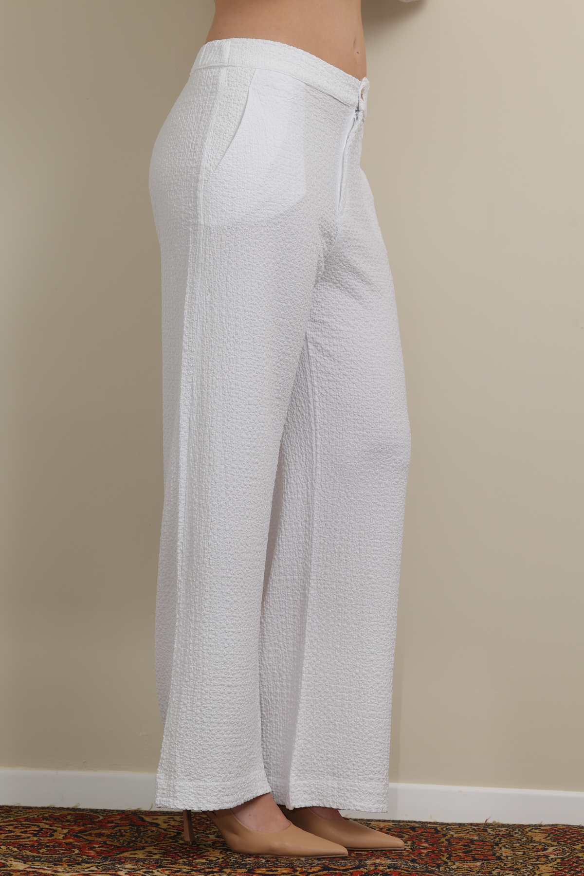 שימי לב💛: המכנס הלבן מעט שקוף. מומלץ ללבוש עם תחתון או מכנסון בצבע גוף.