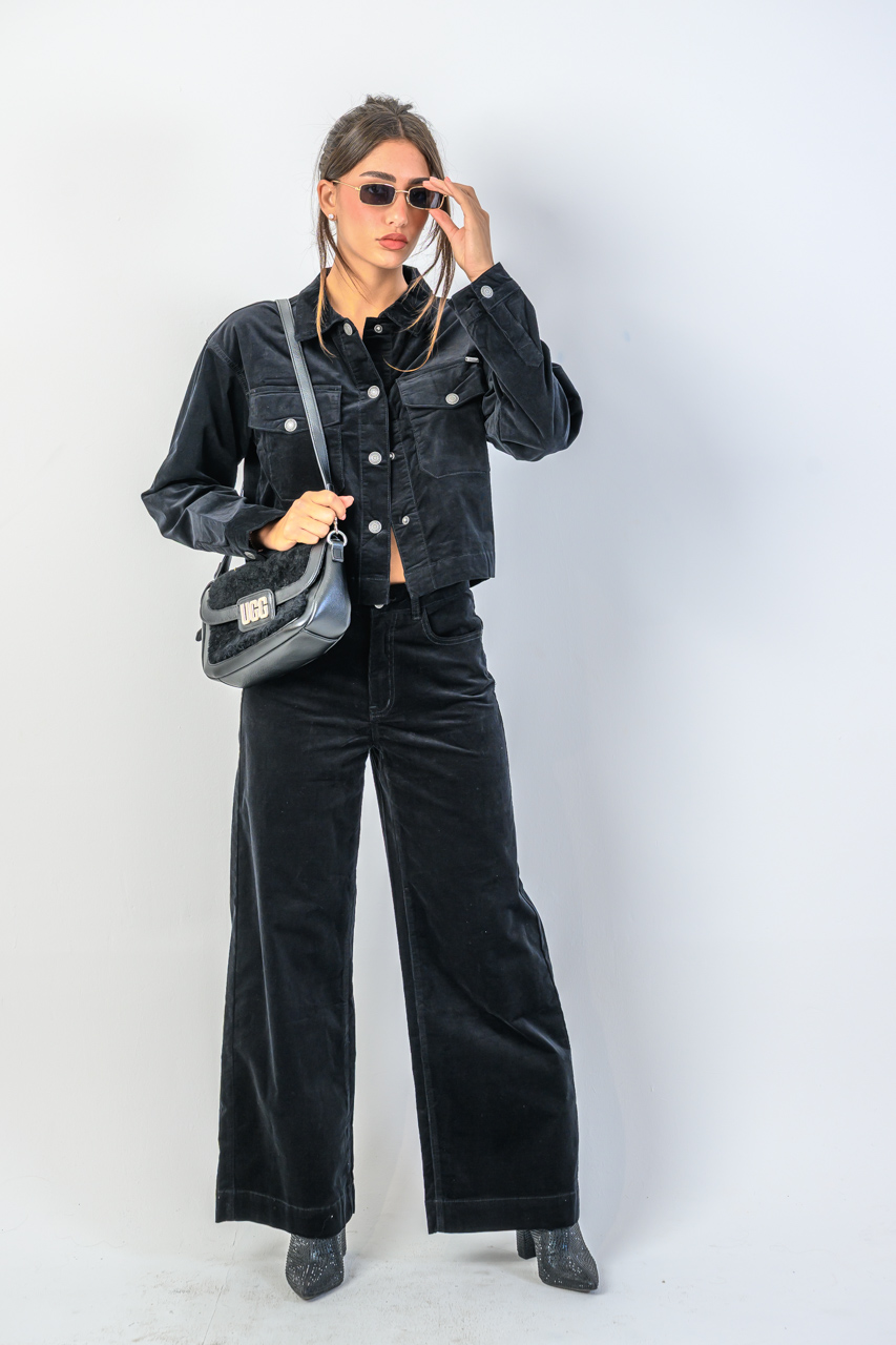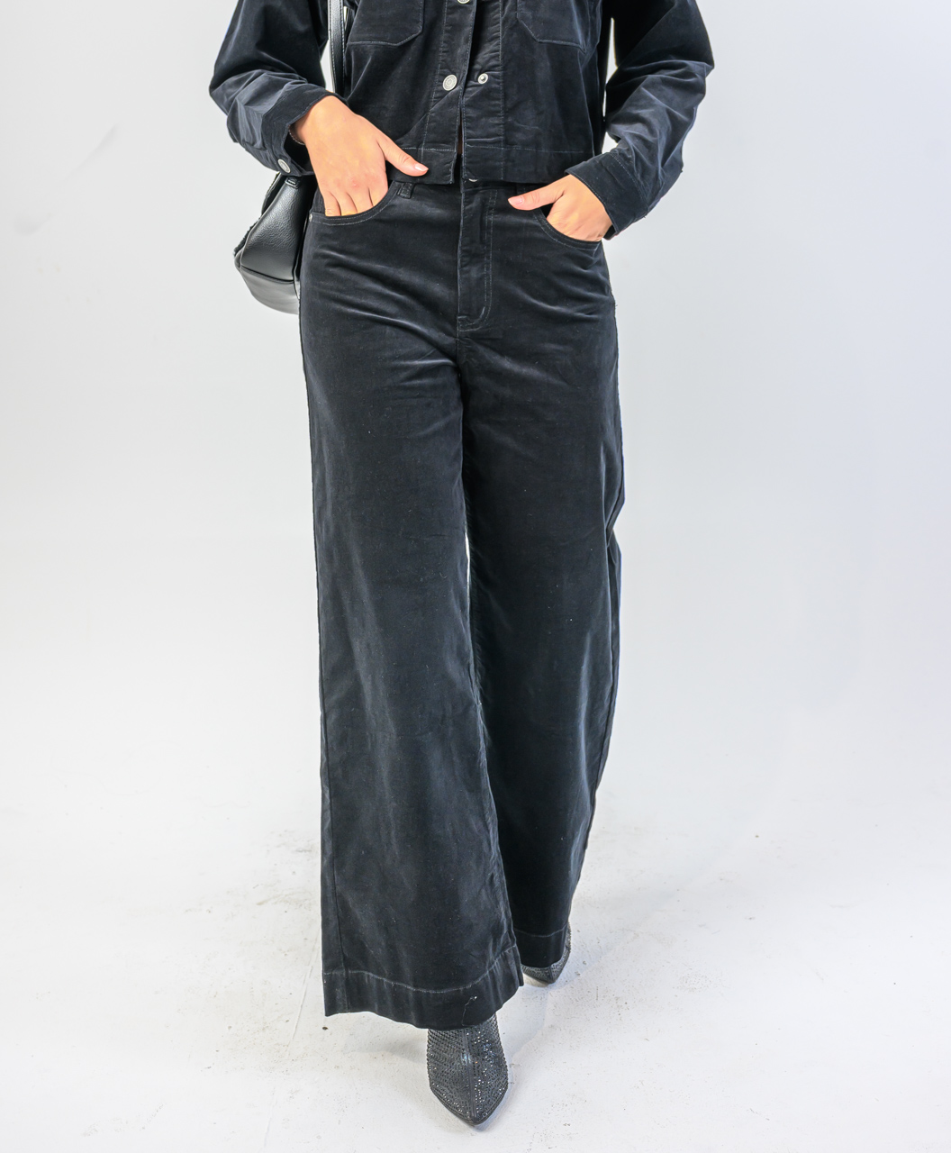 מכנס קורדרוי wide leg מחמיא וטרנדי בעל גזרה גבוהה ומחמיאה, עשוי מבד קורדרוי קטיפתי עם כיסים צדדיים, המשלבים נוחות עם מראה מתוחכם.