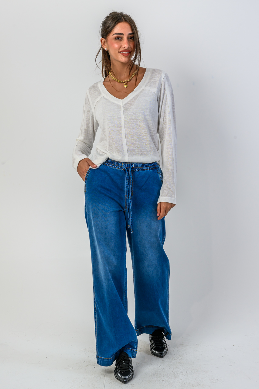 מכנס wide-leg מבד נעים ואווירירי, מתאים לערבי סתיו רגועים