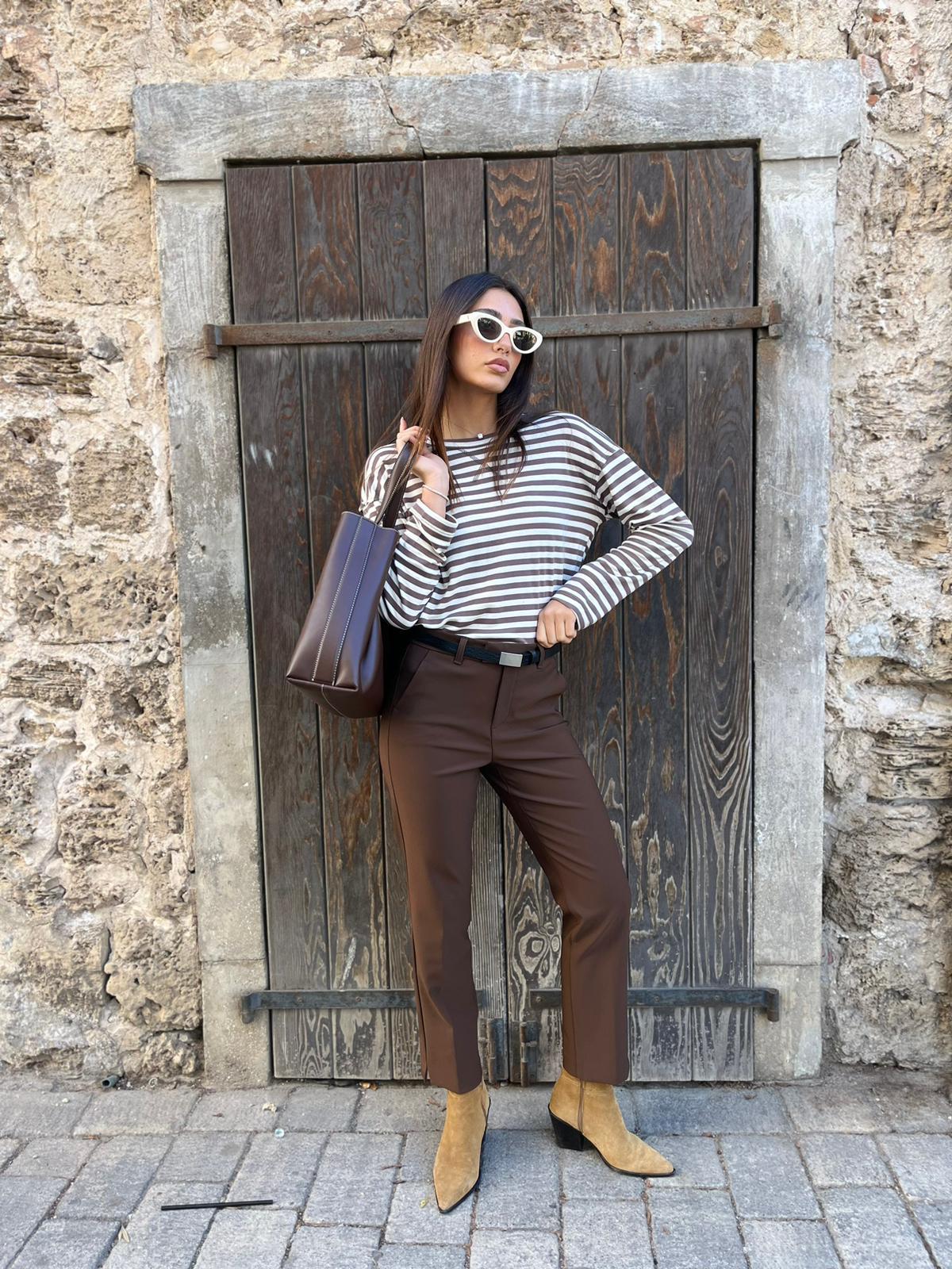מכנס stright-leg מבד גמיש ועוטף, מתאים לערבי סתיו רגועים